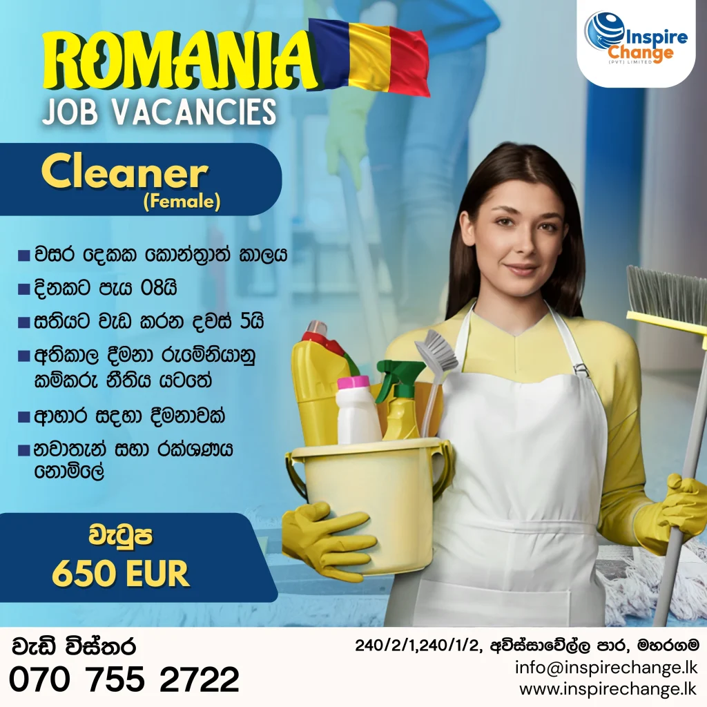 We are currently recruiting Female Cleaners for well-established companies in Romania. This is an excellent opportunity for Sri Lankan women who are looking to work in Europe with no prior experience required and full company-provided benefits.