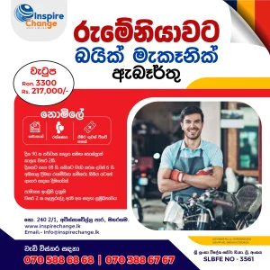 How to Apply: Interested candidates should send their resume to info@inspirechange.lk . Please include “Bike Mechanics Application – [Your Name]” in the subject line.